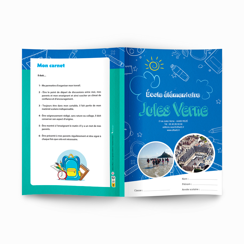 L’agenda de l’élève est un véritable outil pédagogique d’aide à l’organisation. Conçu de manière intuitive, il offre une parfaite visibilité de l’ensemble du travail à réaliser. Avec une semaine sur deux pages, l’élève visualise d’un seul coup d’œil les devoirs hebdomadaires à faire et peut appréhender les révisions. Pratique, il affiche les dates de l’année en cours, le folio des pages et possède des coins prédécoupés pour un repérage rapide.